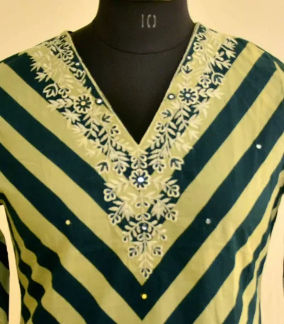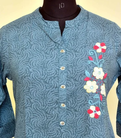 - Sleeves: 3/4th sleeves with embroidered edging