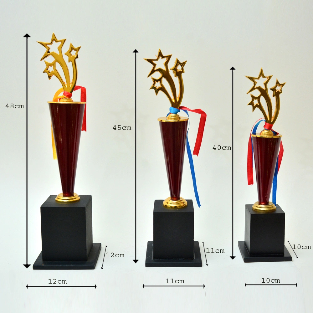 Our premium gold trophies are designed to celebrate achievements and make every occasion truly unforgettable. Celebrate success with these elegant trophies, featuring a modern and artistic design that blends elegance with boldness, a sturdy wooden base, and comes in three sizes.