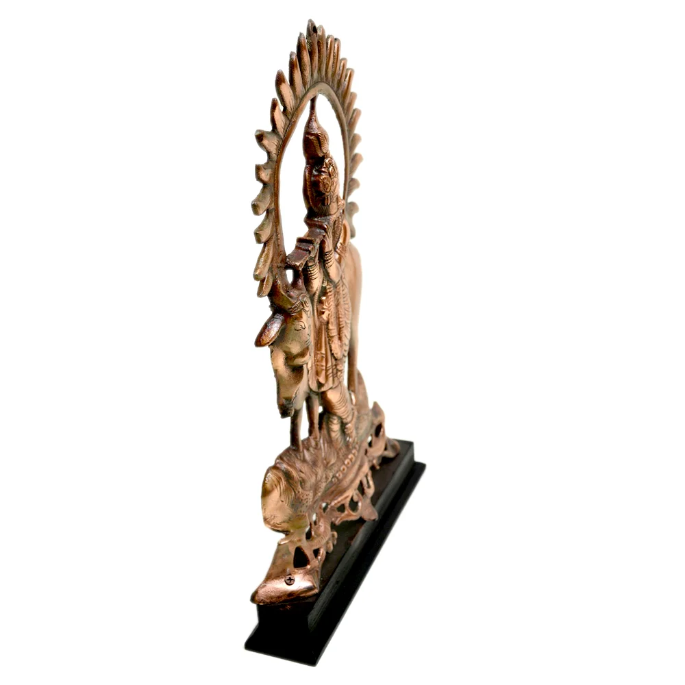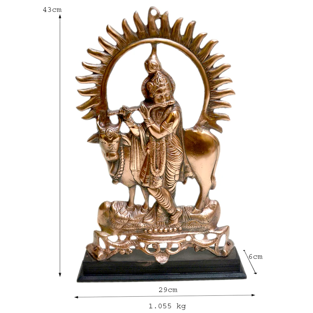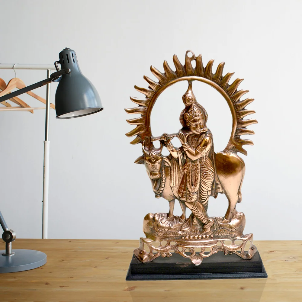 Bring home divine blessings and timeless artistry with our Handcrafted Lord Krishna with Cow Statue. Beautifully designed, this piece features Lord Krishna playing his enchanting flute, accompanied by his sacred cow, symbolizing love, compassion, and serenity. Intricately detailed with a radiant arch halo, this sculpture is crafted to enhance the spiritual energy of any space.