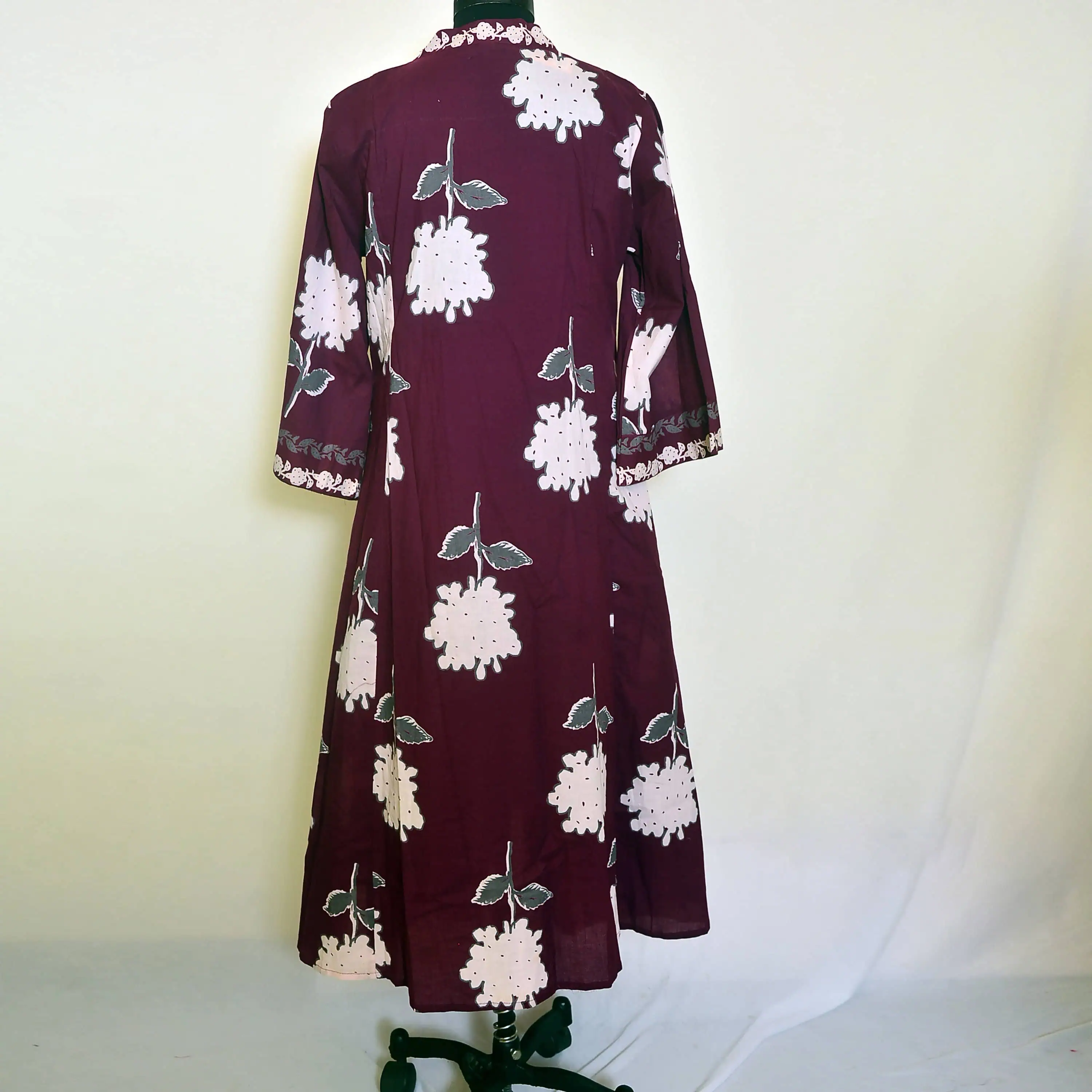 Refresh your ethnic collection with CraftEarth’s Wine Floral Printed Cotton Suit Sets with Matching Dupatta. Crafted from breathable cotton, this elegant suit set features a straight kurta with a V-neckline and notch detailing, complemented by 3/4th sleeves for easy comfort. The kurta is paired with a matching solid bottom and a beautifully hand block printed dupatta that adds a graceful touch. Perfect for festive occasions, office wear, or casual outings, this outfit blends traditional artistry with everyday sophistication.