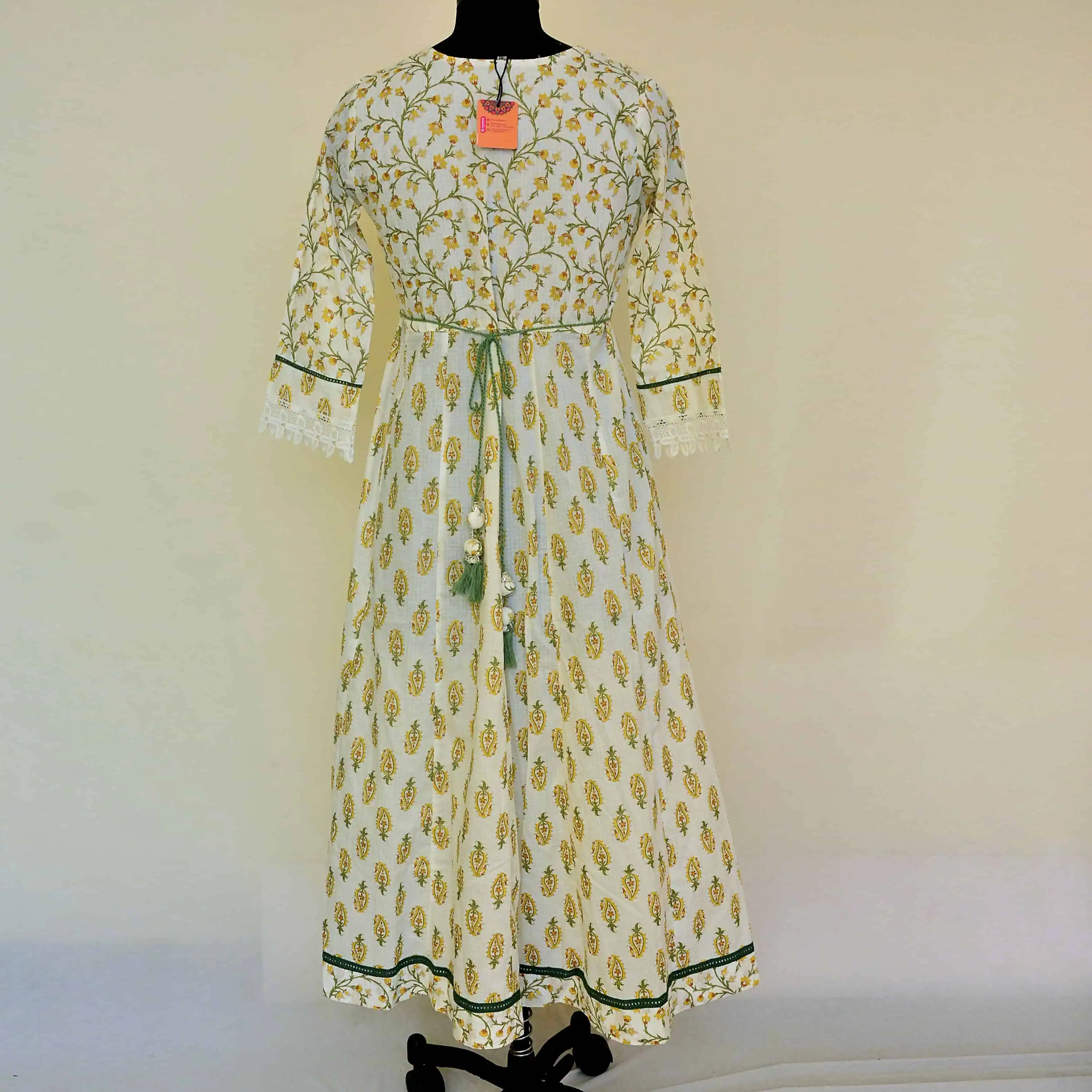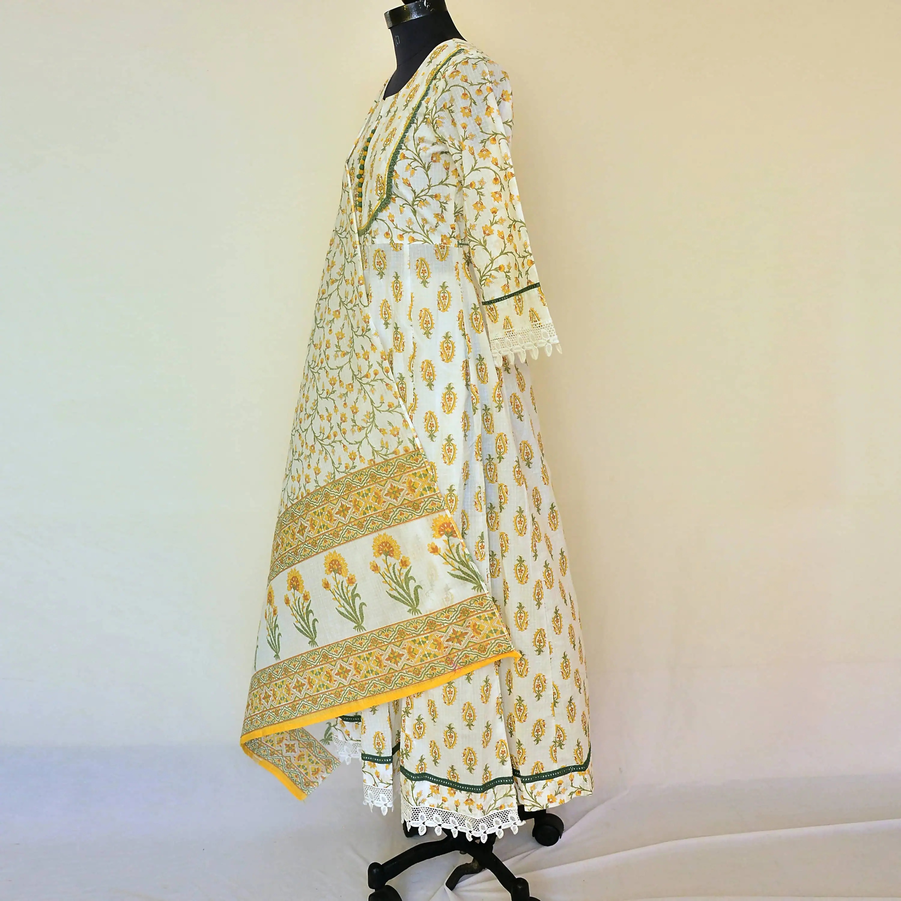 CraftEarth White Anarkali Cotton Suit Set with Dupatta for Women K-D138