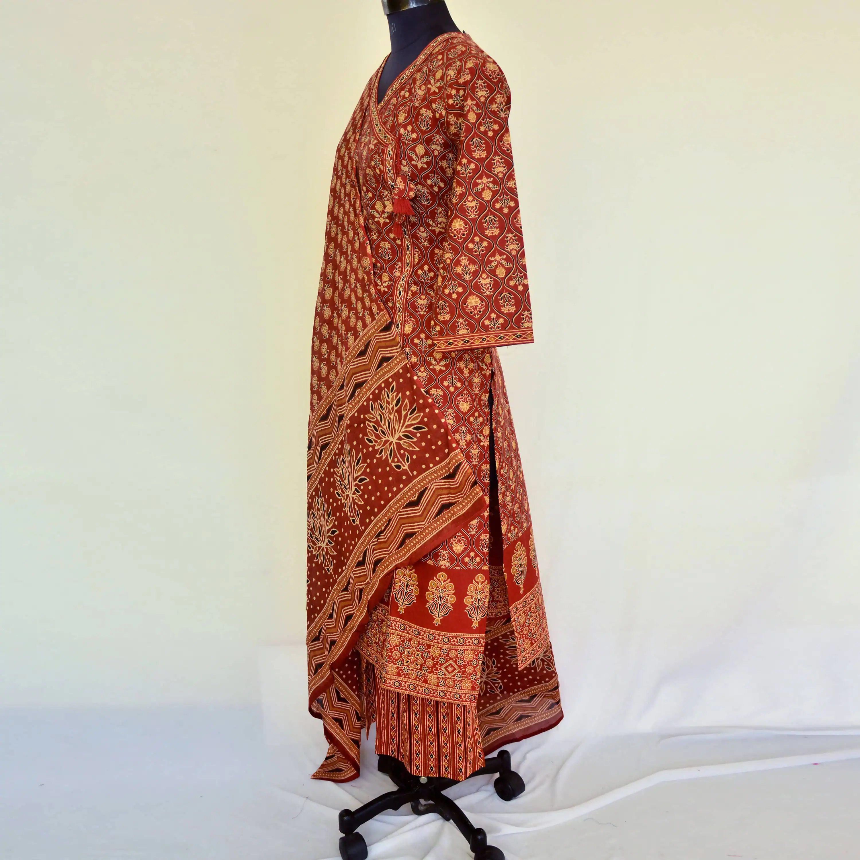 CraftEarth Women’s Printed Cotton Angrakha Kurta Set with Dupatta K-D190