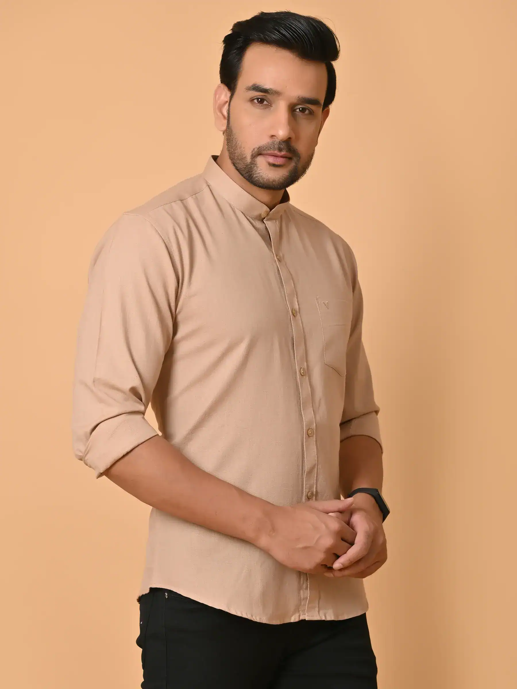 CraftEarth’s Men’s Pine Brown Solid Shirt – FS – C39