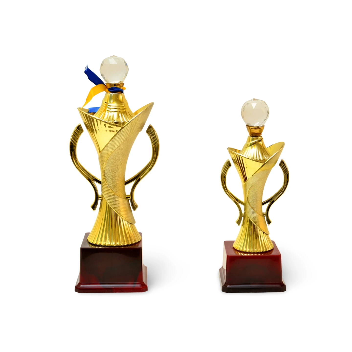 Our premium gold diamond trophies are designed to celebrate achievements and make every occasion truly unforgettable. Celebrate success with these elegant trophies, featuring a modern and artistic design that blends elegance with boldness, a sturdy wooden base, and comes in three sizes.