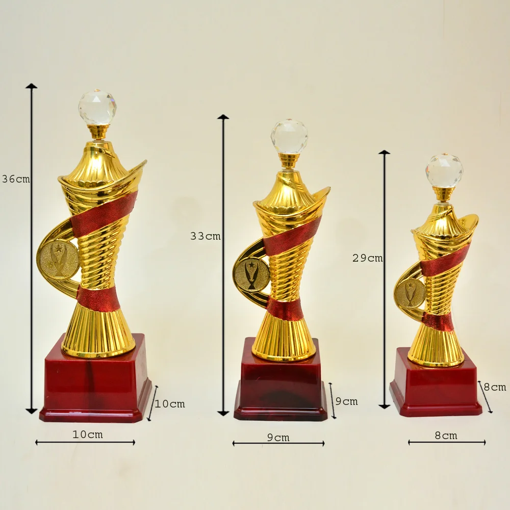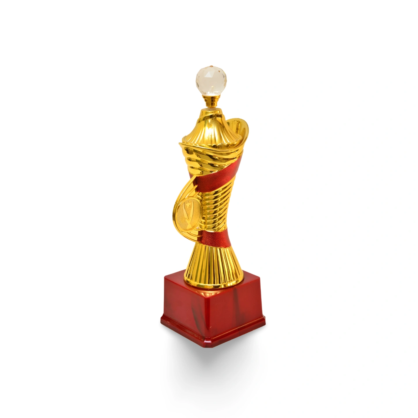 Our premium gold diamond trophies are designed to celebrate achievements and make every occasion truly unforgettable. Celebrate success with these elegant trophies, featuring a modern and artistic design that blends elegance with boldness, a sturdy wooden base, and comes in three sizes.