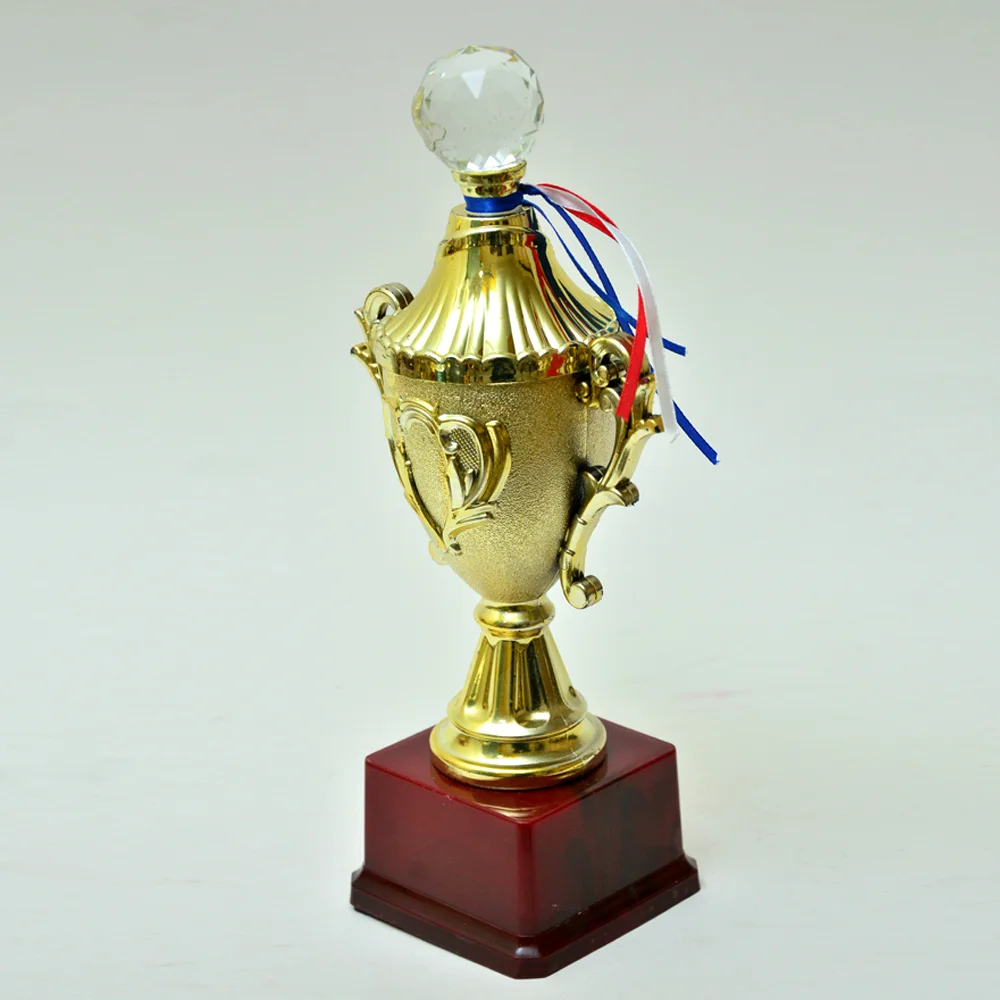 Our premium gold trophies are designed to celebrate achievements and make every occasion truly unforgettable. Celebrate success with these elegant trophies, featuring a modern and artistic design that blends elegance with boldness, a sturdy wooden base, and comes in three sizes.