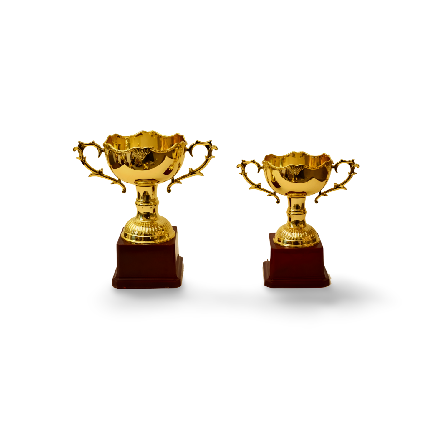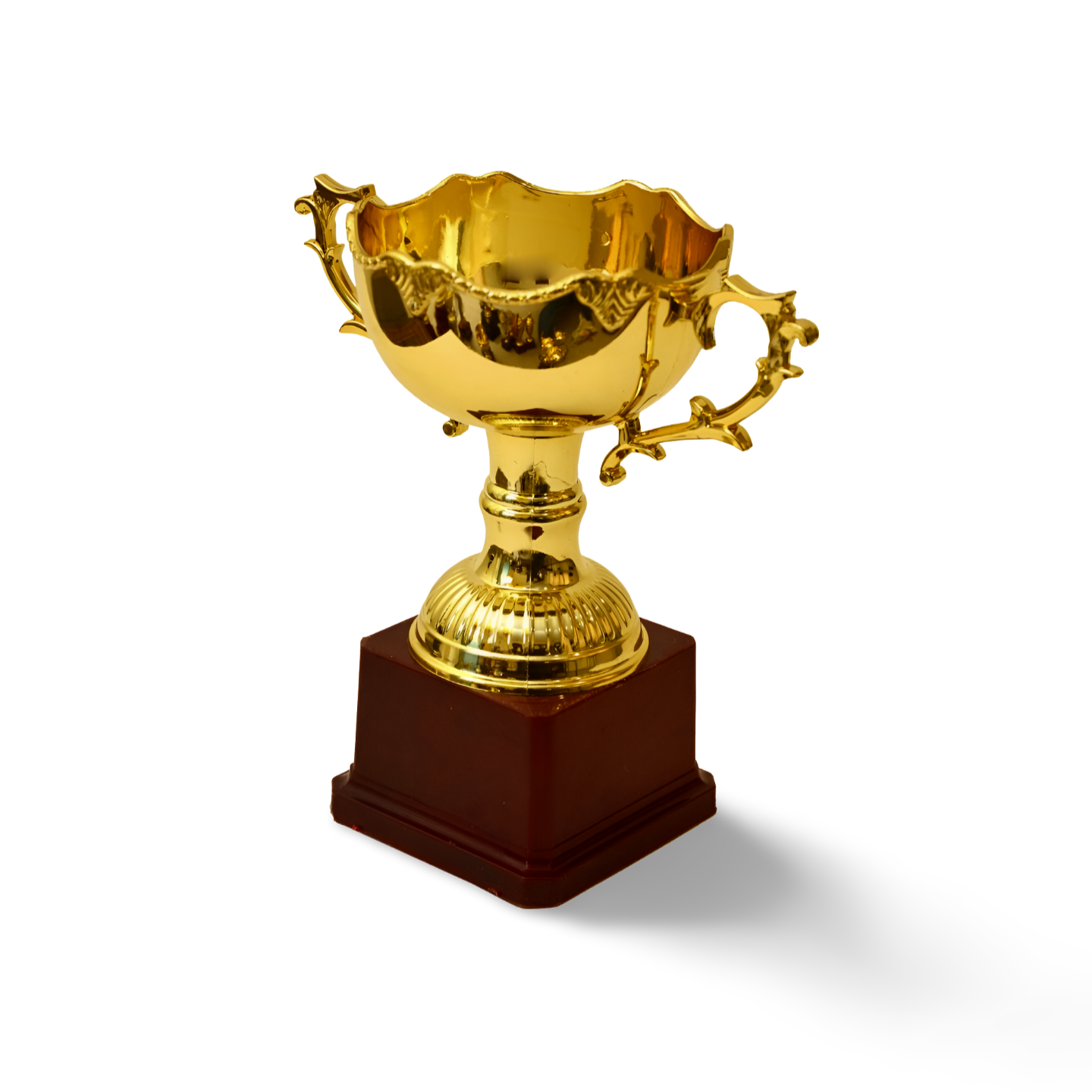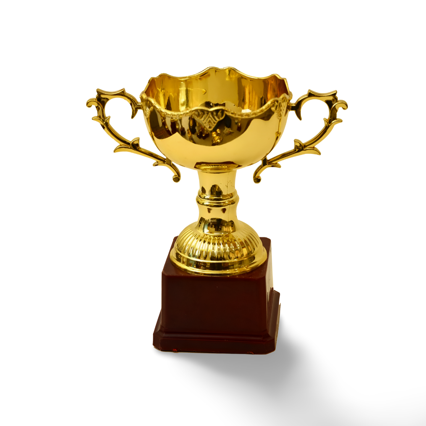 Our premium gold trophies are designed to celebrate achievements and make every occasion truly unforgettable. Celebrate success with these elegant trophies, featuring a modern and artistic design that blends elegance with boldness, a sturdy wooden base, and comes in three sizes.