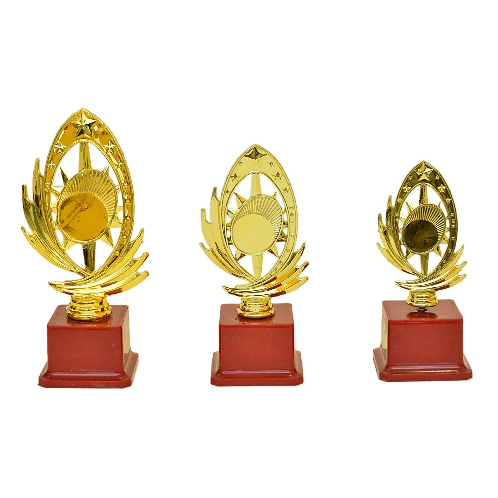 Our premium gold trophies are designed to celebrate achievements and make every occasion truly unforgettable. Celebrate success with these elegant trophies, featuring a modern and artistic design that blends elegance with boldness, a sturdy wooden base, and comes in three sizes.