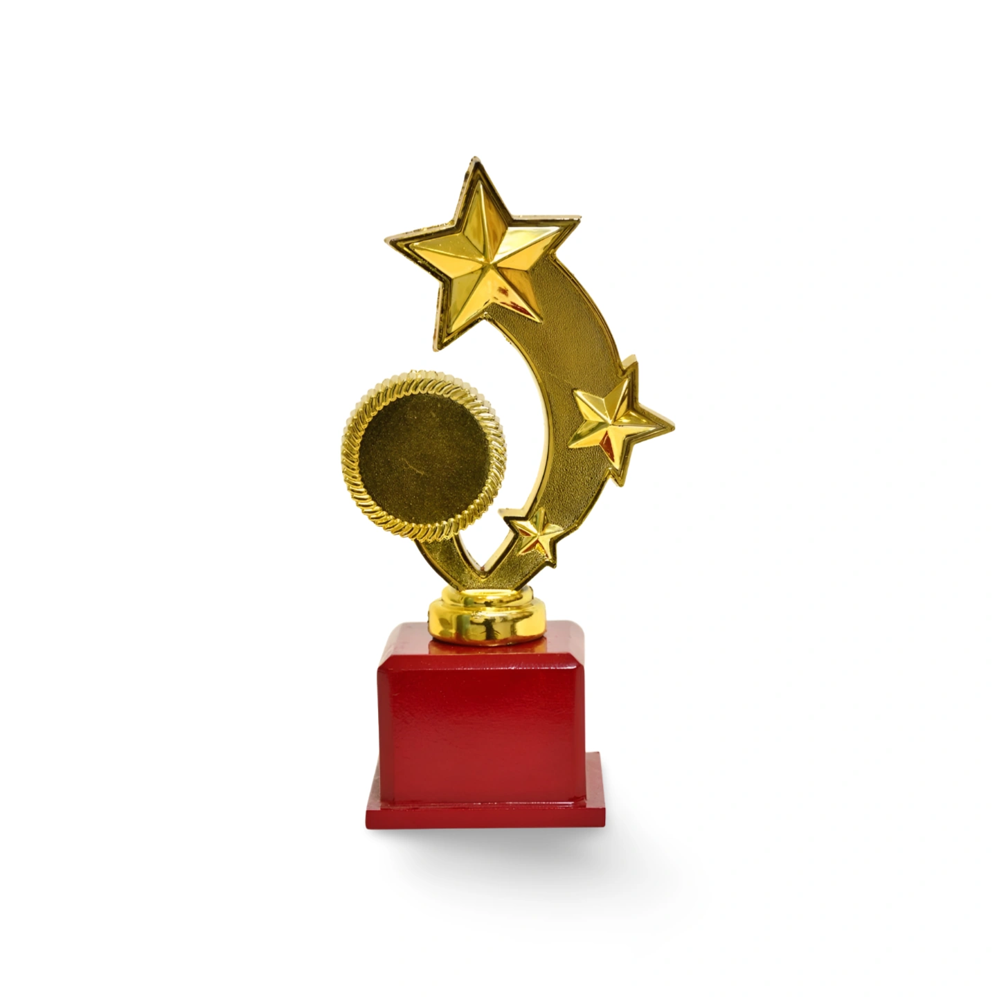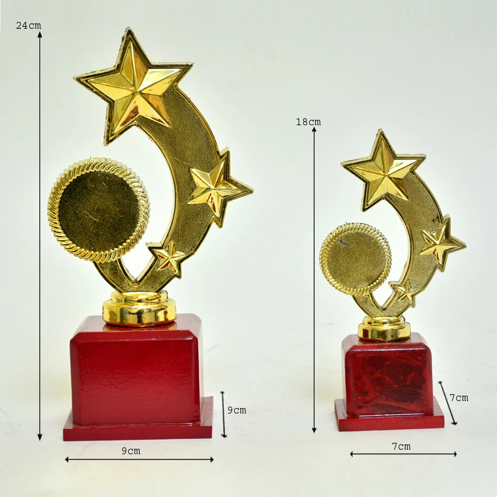 Our premium gold trophies are designed to celebrate achievements and make every occasion truly unforgettable. Celebrate success with these elegant trophies, featuring a modern and artistic design that blends elegance with boldness, a sturdy wooden base, and comes in three sizes.