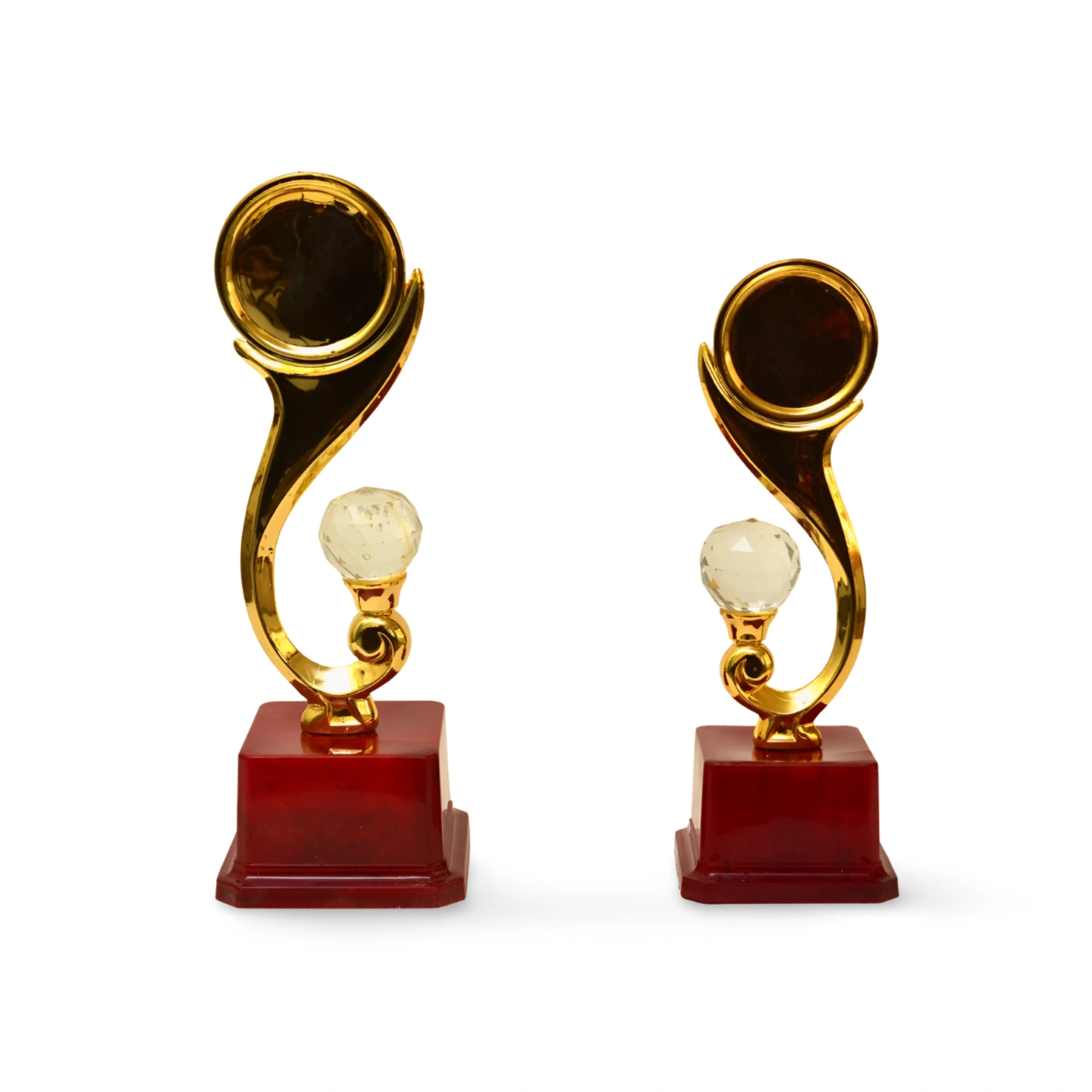 Our premium gold trophies are designed to celebrate achievements and make every occasion truly unforgettable. Celebrate success with these elegant trophies, featuring a modern and artistic design that blends elegance with boldness, a sturdy wooden base, and comes in three sizes.