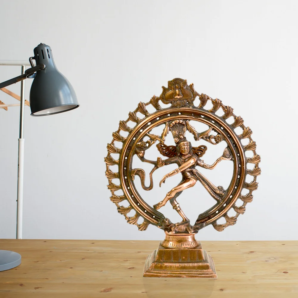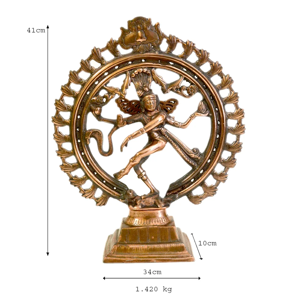 Bring home the divine presence of Lord Shiva in his Nataraja form, symbolizing cosmic dance and energy. This intricately handcrafted metal statue showcases Shiva’s Ananda Tandava (Dance of Bliss), encased within a sacred ring of fire, representing the cycle of creation, preservation, and destruction.