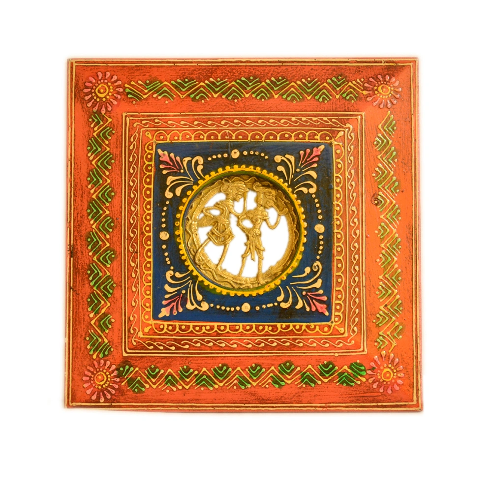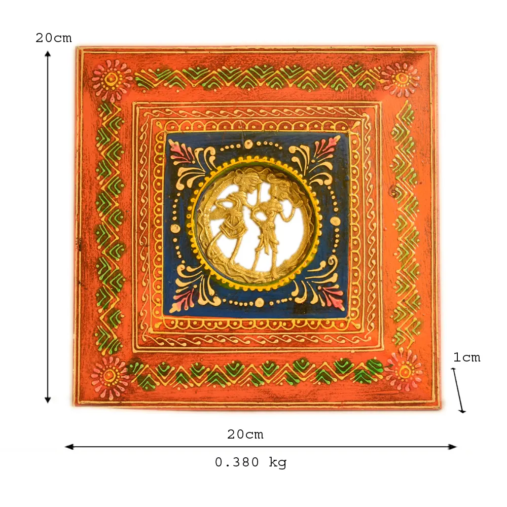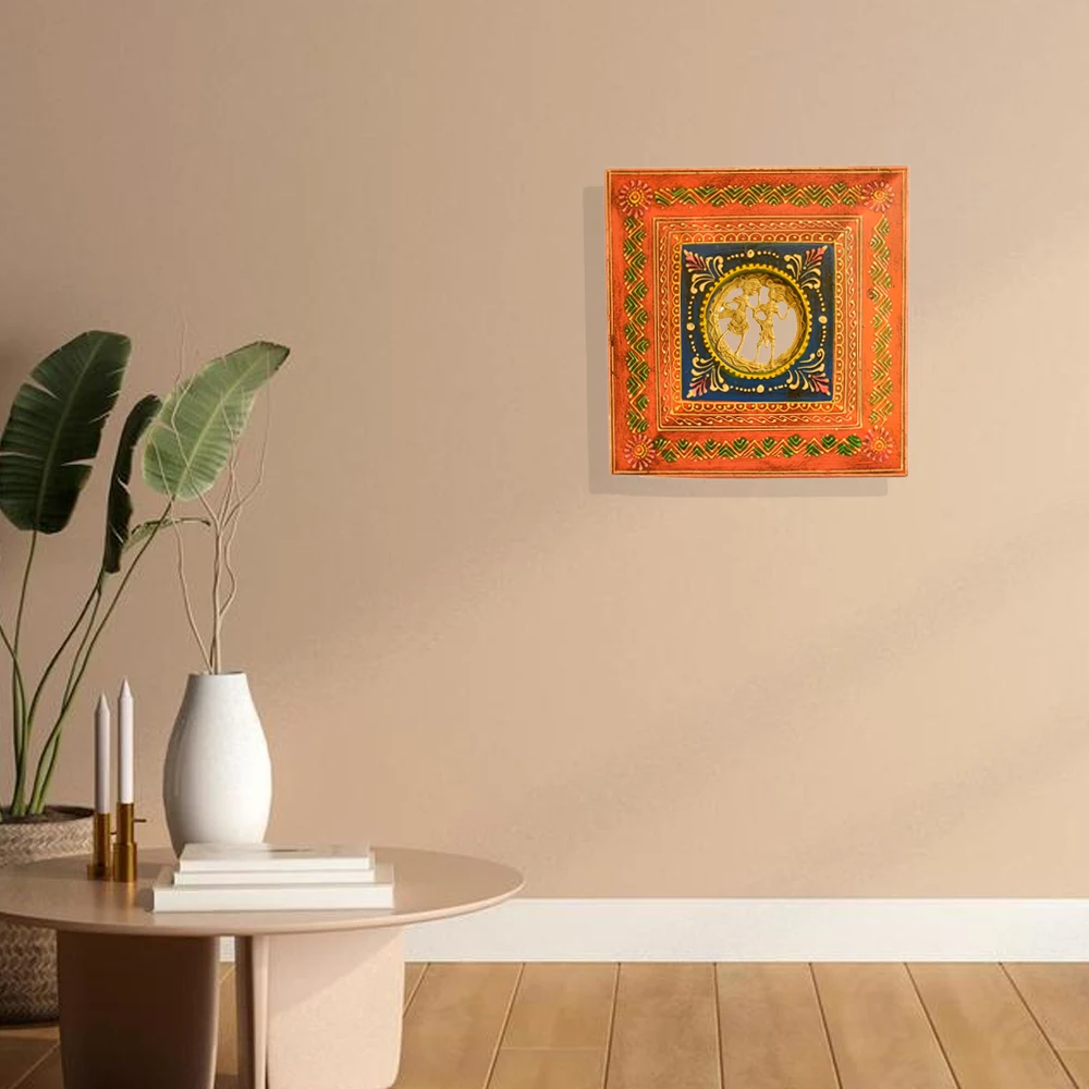 Celebrate divine love with this intricately handcrafted Dhokra Casting Wall Frame. Designed with vibrant hand-painted patterns and a stunning inlay at the center, this art piece beautifully blends tradition with craftsmanship. Perfect for spiritual corners, living room walls, or as a thoughtful gift, this square frame brings harmony and a cultural touch to any space.