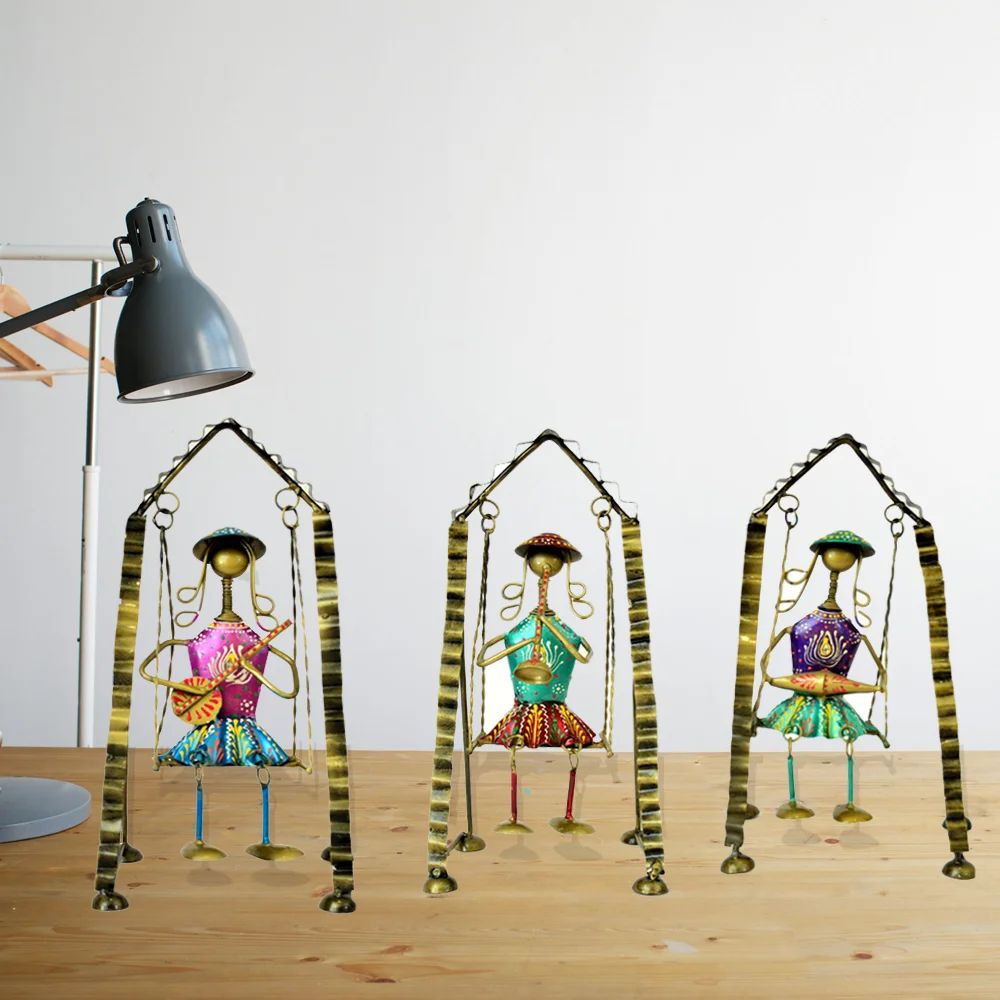 Bring a vibrant touch of tribal heritage into your home with this exquisite Handcrafted Tribal Musician Figurine Set on Swings. Each figurine, perched gracefully on a traditional-style swing, is a celebration of culture, music, and meticulous craftsmanship. Hand-painted in rich colors with fine ethnic detailing, these musicians depict joyful harmony and artistic expression.