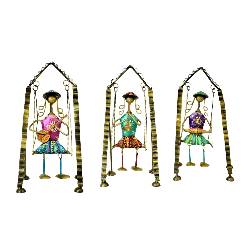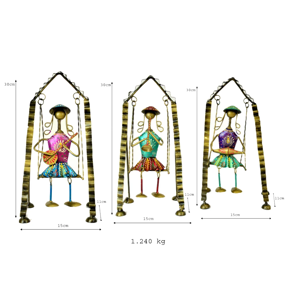 Handcrafted Tribal Musician Figurine Set on Swings (Set of 3) I-4