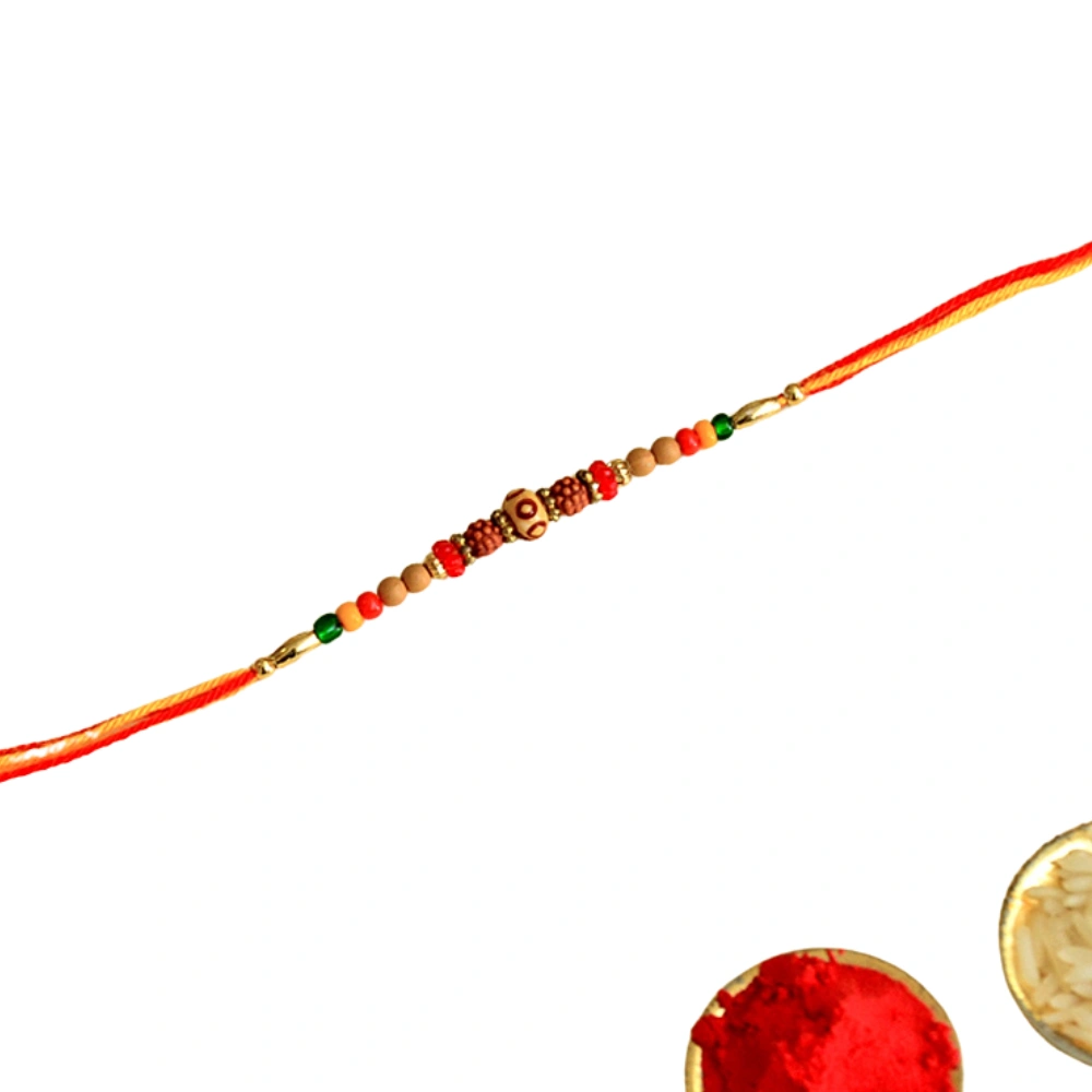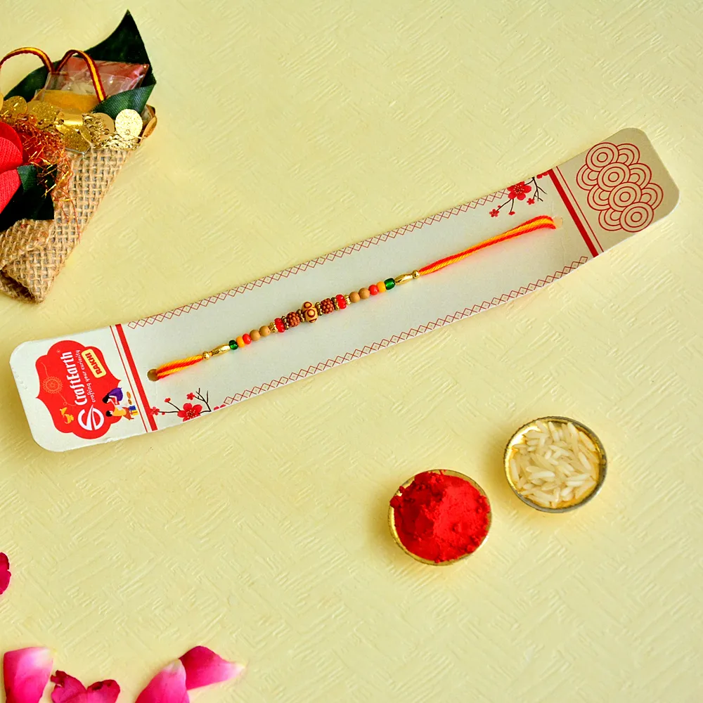 Rustic Red-Green Beaded Rakhi – RK-139 | Handcrafted Elegance