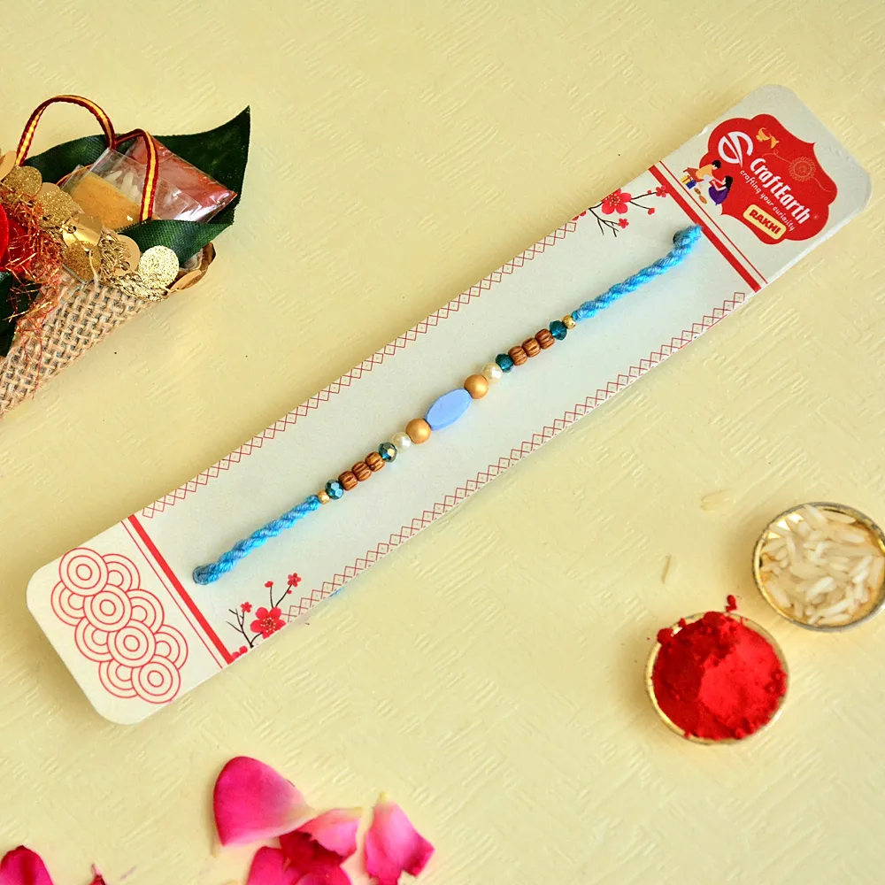 Celebrate tradition with our handcrafted rakhi, beautifully made with beads and threads that reflect Indian heritage.