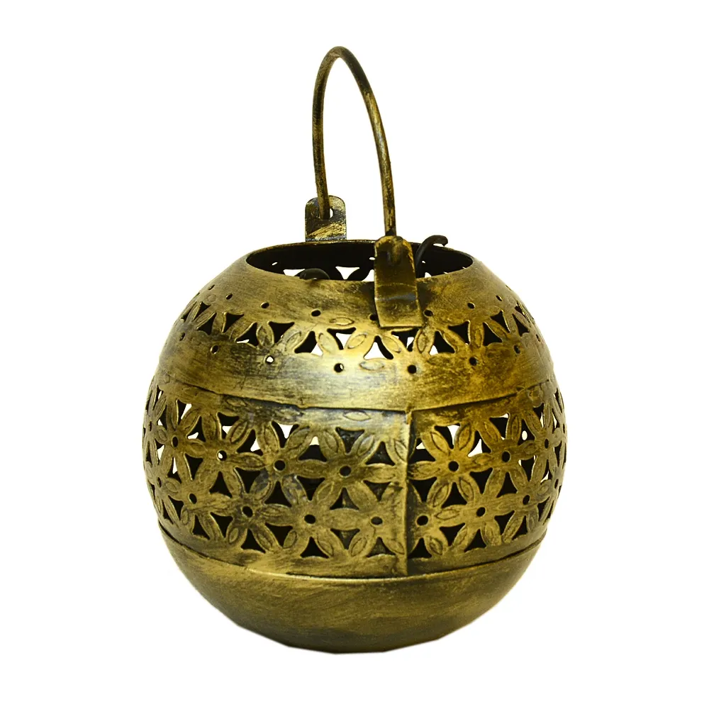 Add a touch of rustic charm to your space with this handcrafted antique finished metal lantern. Perfect for creating a warm, ambient glow in any room, this intricately cut piece brings together traditional Indian craftsmanship and timeless design..
