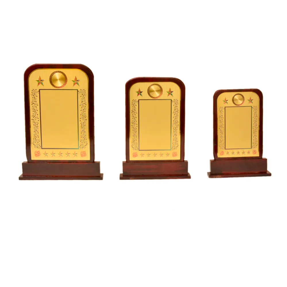 Our premium wooden mementos are designed to celebrate achievements and make every occasion truly unforgettable. Celebrate success with these elegant memento, featuring a sleek golden metallic plate and three sizes to choose from.