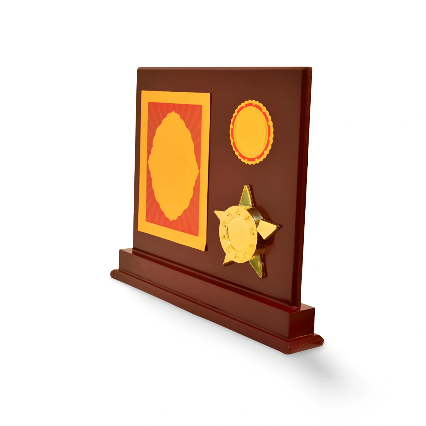 Our premium wooden mementos are designed to celebrate achievements and make every occasion truly unforgettable. Celebrate success with these elegant memento, featuring a sleek golden metallic plate and three sizes to choose from.
